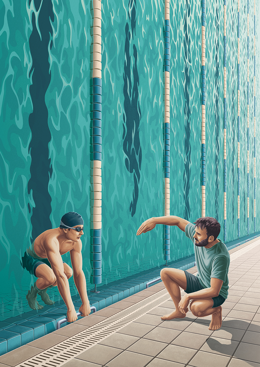 Des entraîneurs de natation explorent les possibilités de leur imagination pour analyser leur activité et trouver ce qui est déjà là, ce qu’ils font mais qu’ils n’avaient pourtant pas « vu » jusque-là. L’imagination devient ainsi un puissant moyen pour revenir au bord du bassin, surtout dans une situation où la Covid-19 avait tout coupé. Il n’est pourtant pas question de souvenirs nostalgiques, mais d’une vraie remise en action : travailler sur son propre travail pour développer son activité. Selon la perspective historico-culturelle de Vygotski, ce qui n’est pas accompli ne disparaît pas et « insiste » dans l’esprit de l’individu. Comme des ombres, les inaccomplis émergent de ce qui est déjà là et donnent à voir les choses de manière différente. Ce travail d’imagination permet aux entraîneurs de s’approprier une « nouvelle » réalité (possible) pour pouvoir, ensuite, la montrer aux athlètes qu’ils entraînent.